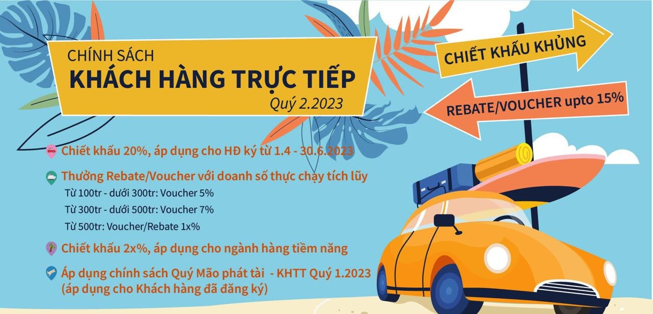 2. Nội dung chính sách:Khách hàng ký hợp đồng trong thời gian từ 01/4/2023 đến hết ngày 30/6/2023 và phát sinh thực chạy (quy định chi tiết trong phần quy định chính sách) được hưởng ưu đãi như sau: